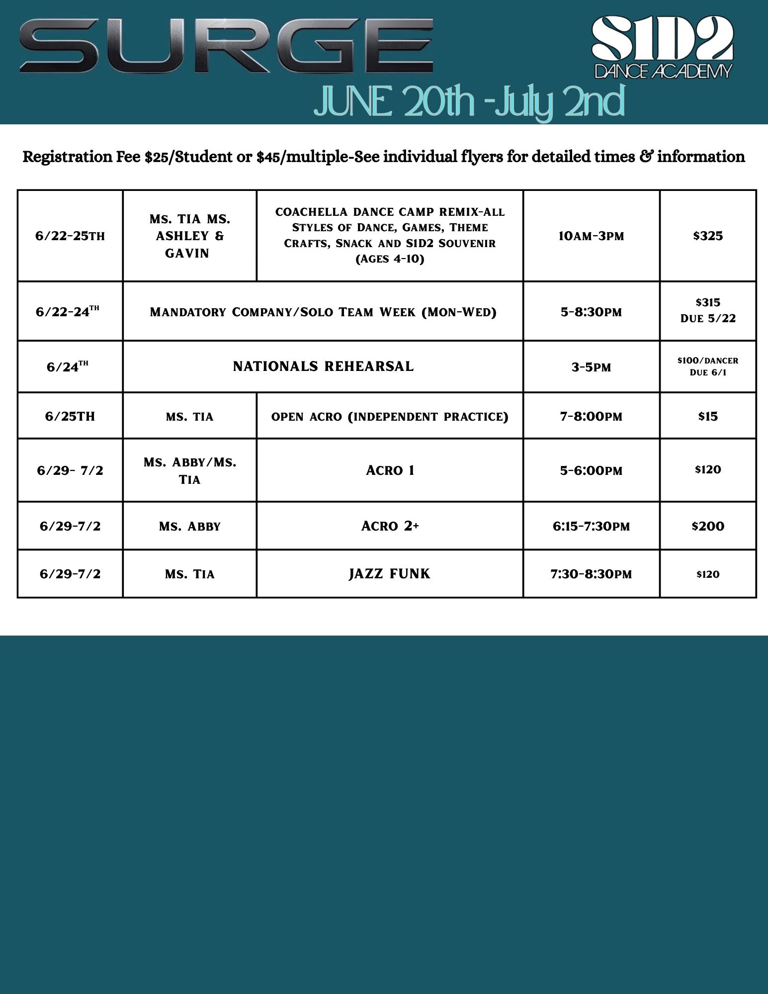 Thank you for your understanding and cooperation. We look forward to a fun and exciting summer of dance!